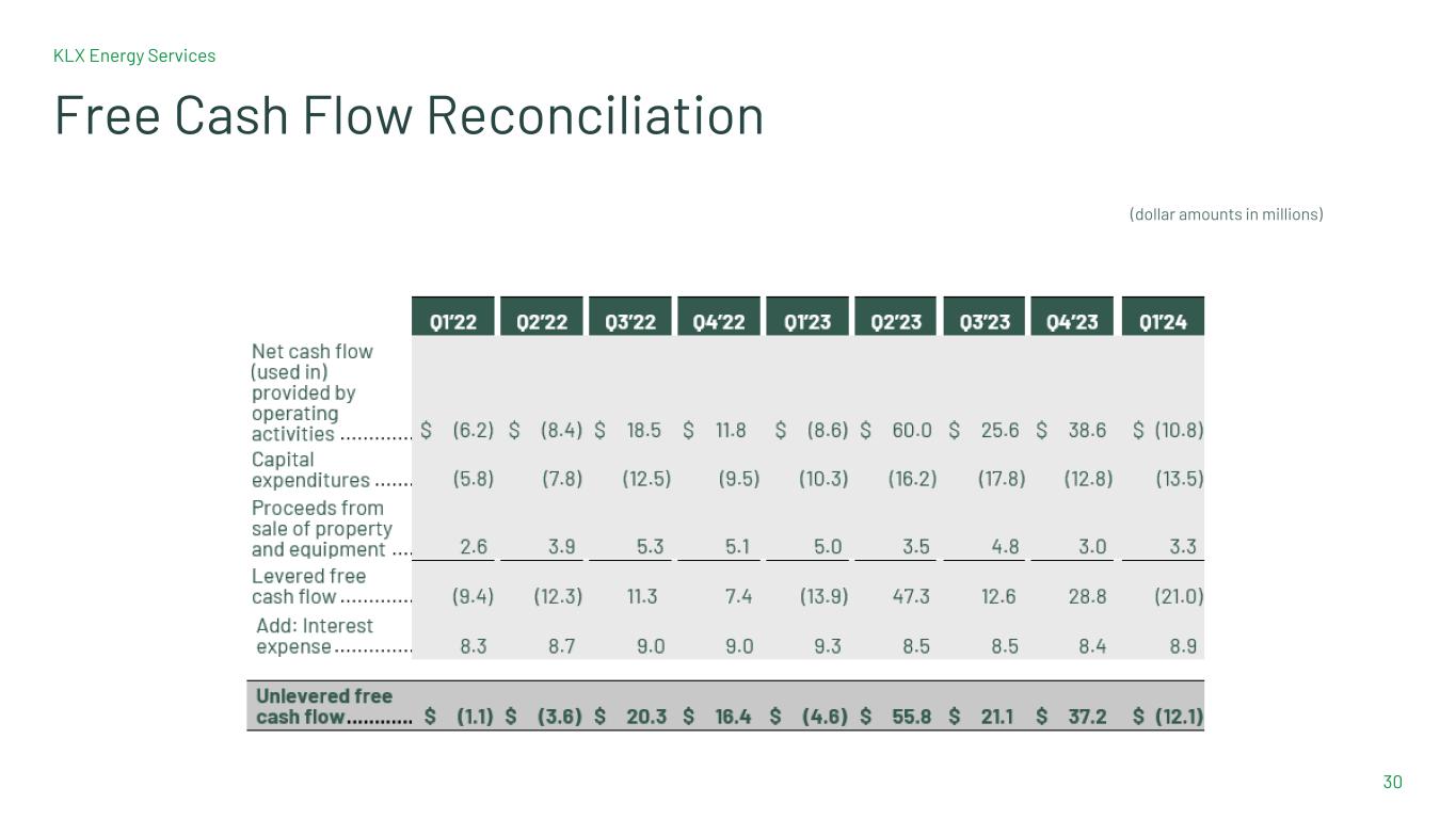 KLX Energy Services 30 Free Cash Flow Reconciliation (dollar amounts in millions)