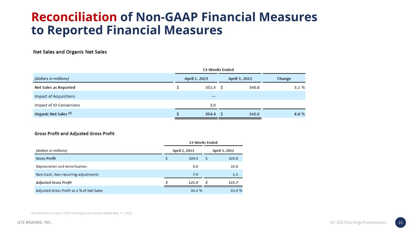 Appendix UTZ BRANDS, INC. Q1 2023 Earnings Presentation