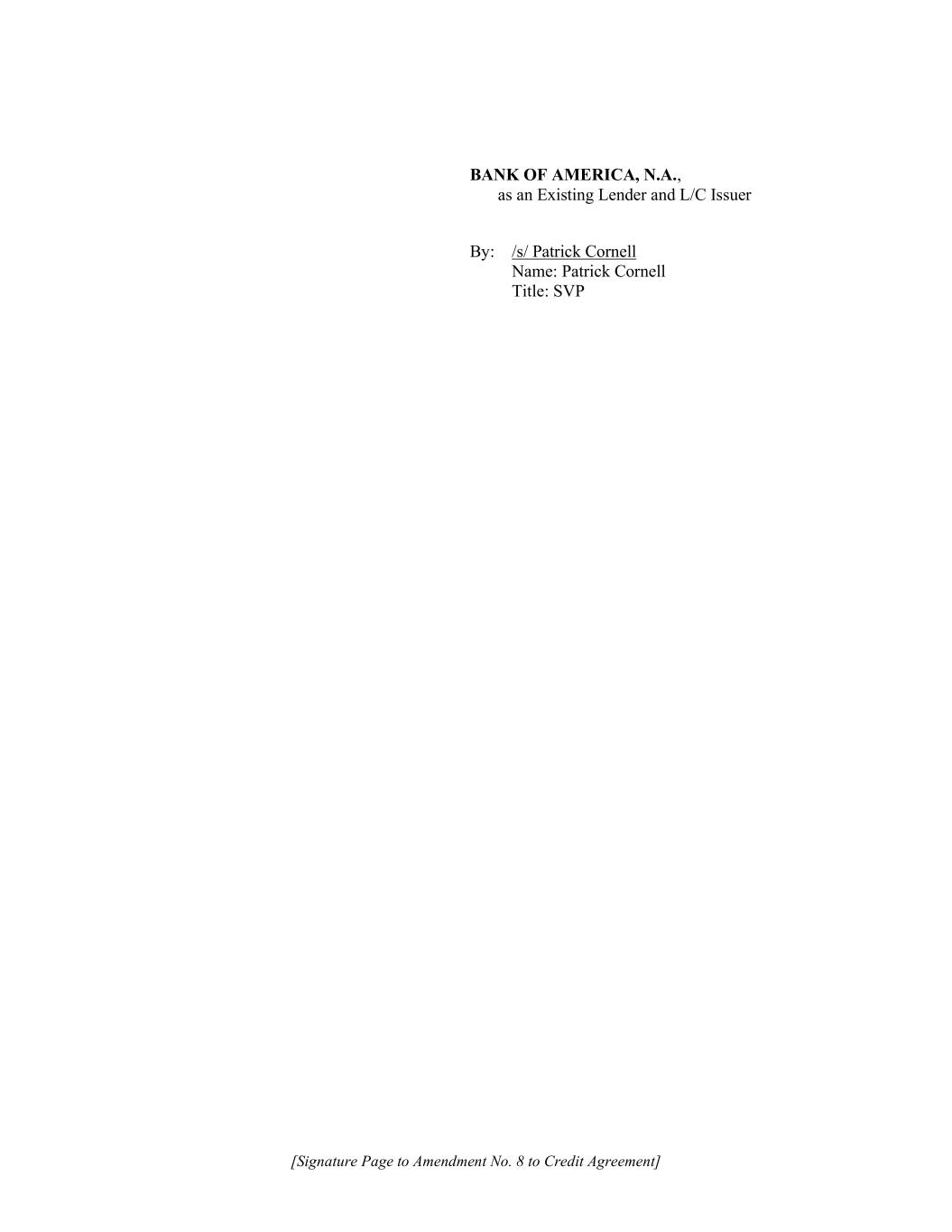 [Signature Page to Amendment No. 8 to Credit Agreement] BANK OF AMERICA, N.A., as an Existing Lender and L/C Issuer By: /s/ Patrick Cornell Name: Patrick Cornell Title: SVP