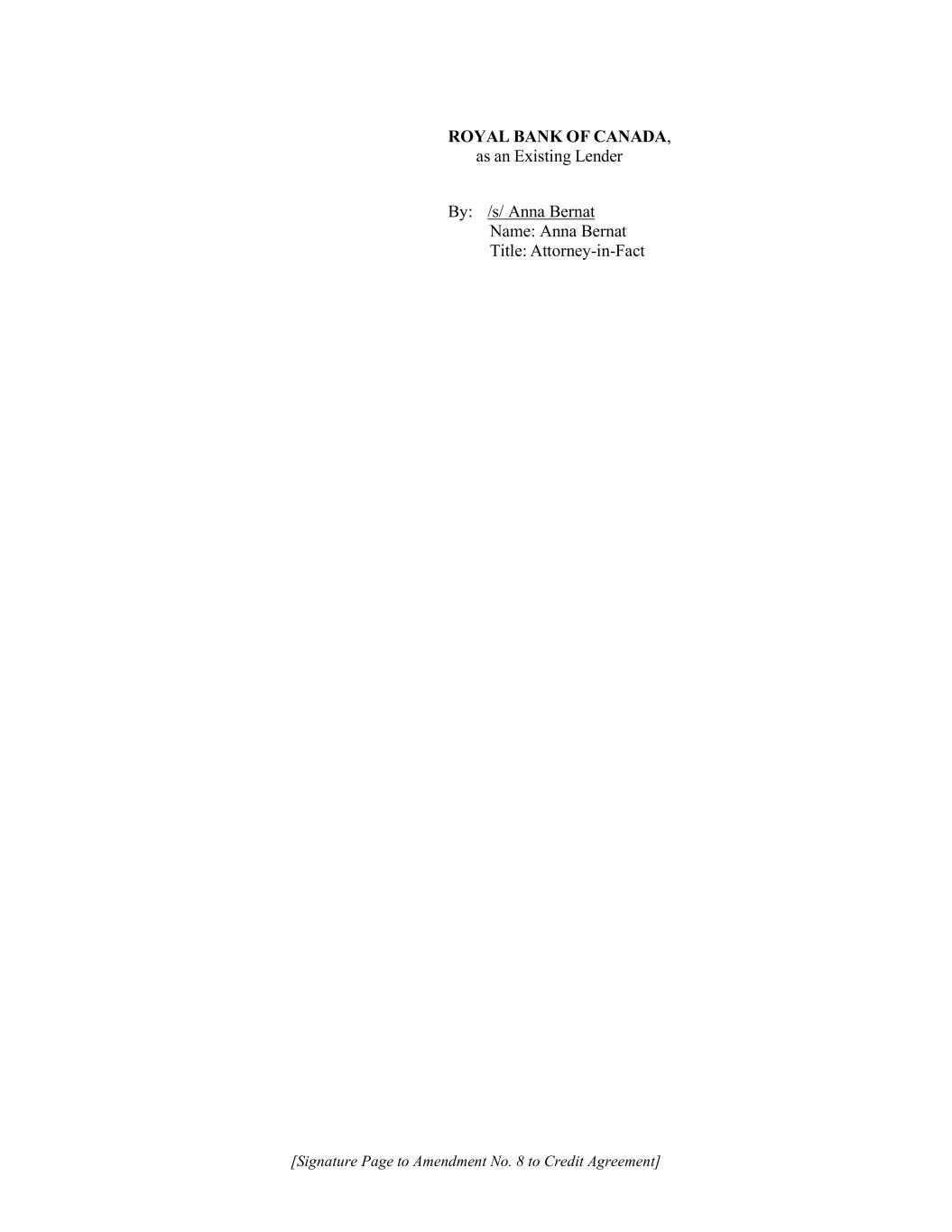 [Signature Page to Amendment No. 8 to Credit Agreement] ROYAL BANK OF CANADA, as an Existing Lender By: /s/ Anna Bernat Name: Anna Bernat Title: Attorney-in-Fact