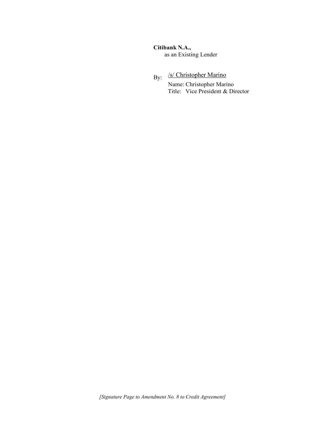 [Signature Page to Amendment No. 8 to Credit Agreement] Citibank N.A., as an Existing Lender By: /s/ Christopher Marino Name: Christopher Marino Title: Vice President & Director