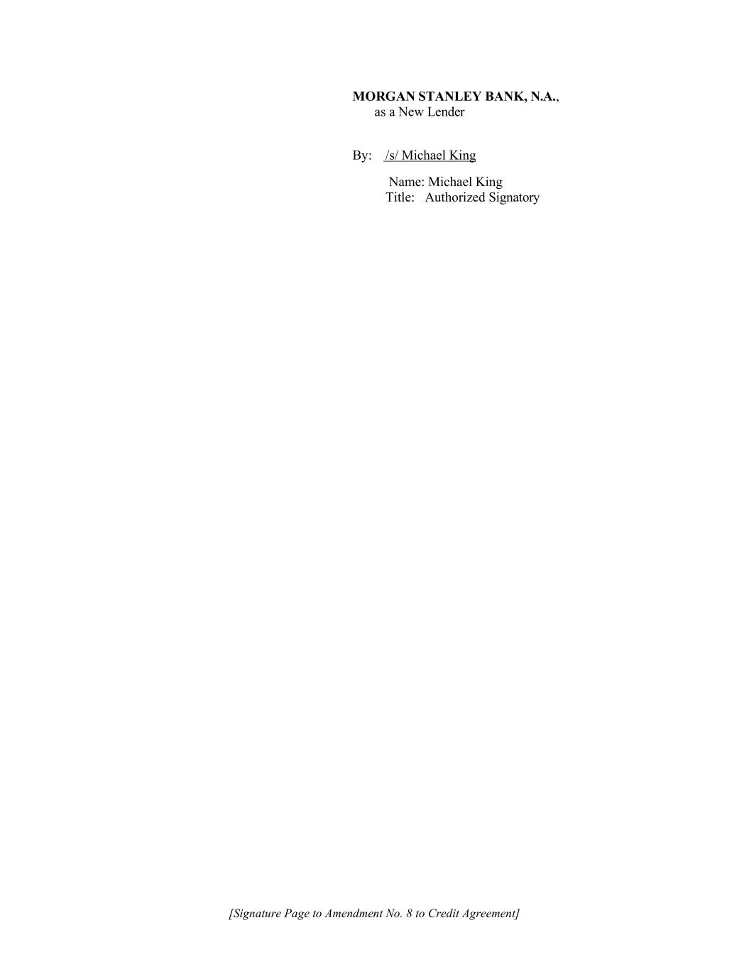 [Signature Page to Amendment No. 8 to Credit Agreement] MORGAN STANLEY BANK, N.A., as a New Lender By: /s/ Michael King Name: Michael King Title: Authorized Signatory