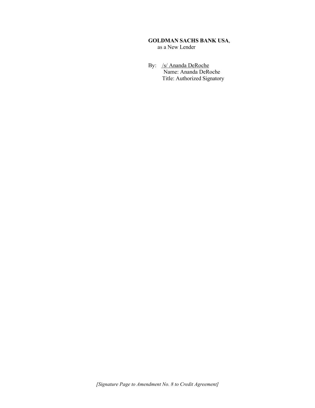 [Signature Page to Amendment No. 8 to Credit Agreement] GOLDMAN SACHS BANK USA, as a New Lender By: /s/ Ananda DeRoche Name: Ananda DeRoche Title: Authorized Signatory