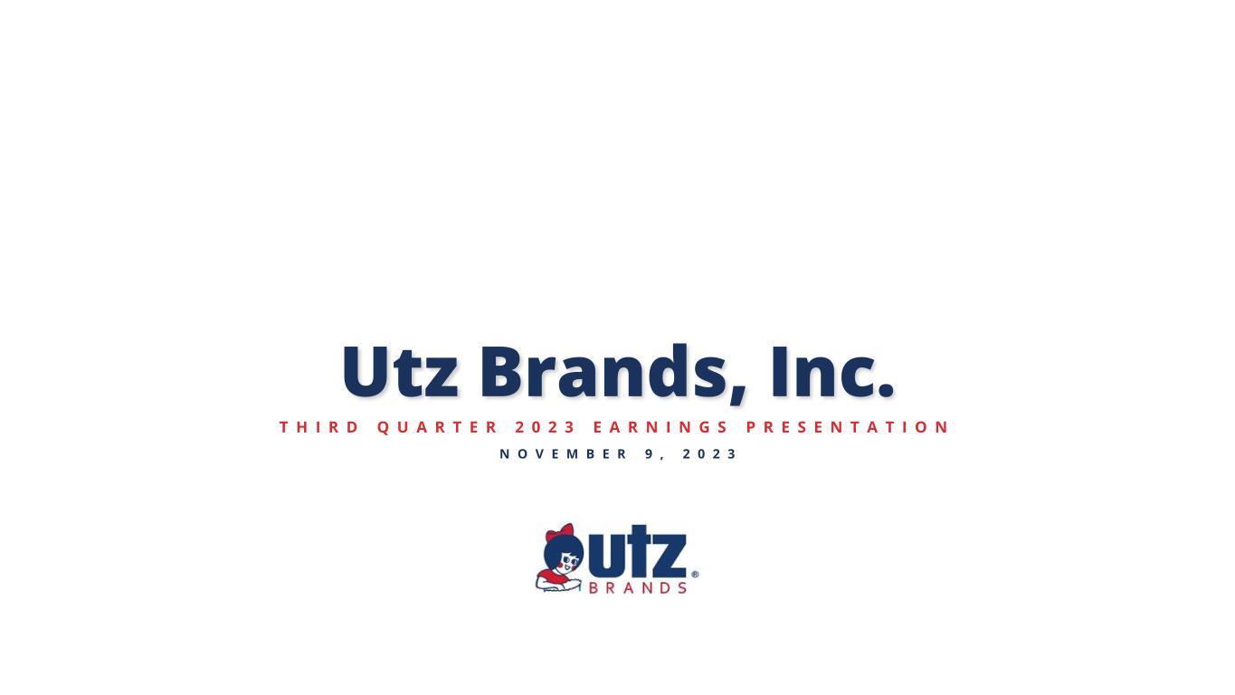 Utz Brands, Inc. T H I R D Q U A R T E R 2 0 2 3 E A R N I N G S P R E S E N T A T I O N N O V E M B E R 9 , 2 0 2 3