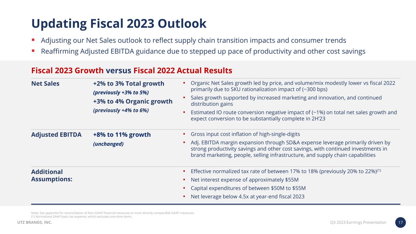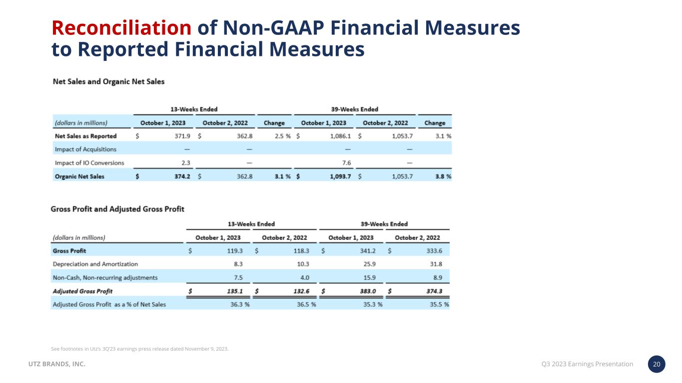 Appendix UTZ BRANDS, INC. Q3 2023 Earnings Presentation