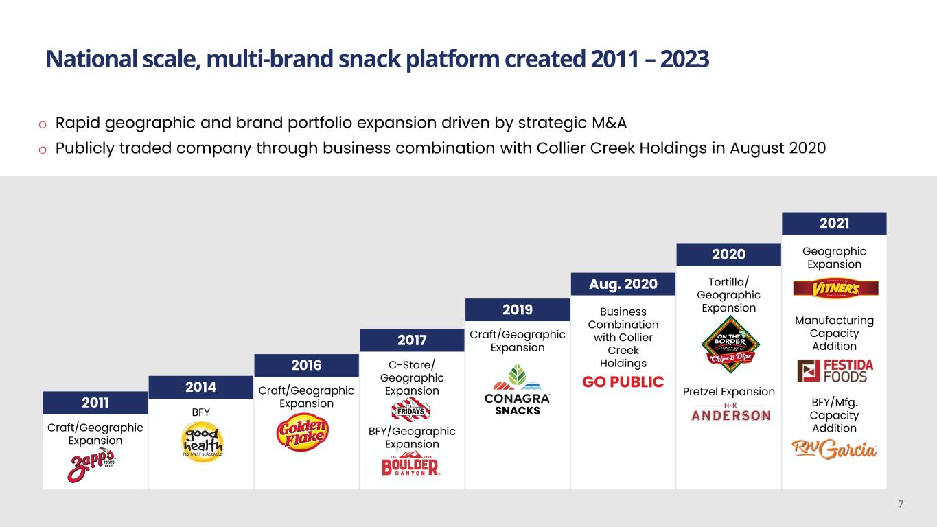 Aug. 2020 2021 2011 2016 2014 2017 2019 2020 Business Combination with Collier Creek Holdings GO PUBLIC Geographic Expansion Manufacturing Capacity Addition BFY/Mfg. Capacity AdditionCraft/Geographic Expansion Craft/Geographic Expansion BFY C-Store/ Geographic Expansion BFY/Geographic Expansion Craft/Geographic Expansion SNACKS Tortilla/ Geographic Expansion Pretzel Expansion o Rapid geographic and brand portfolio expansion driven by strategic M&A o Publicly traded company through business combination with Collier Creek Holdings in August 2020 National scale, multi-brand snack platform created 2011 – 2023 7