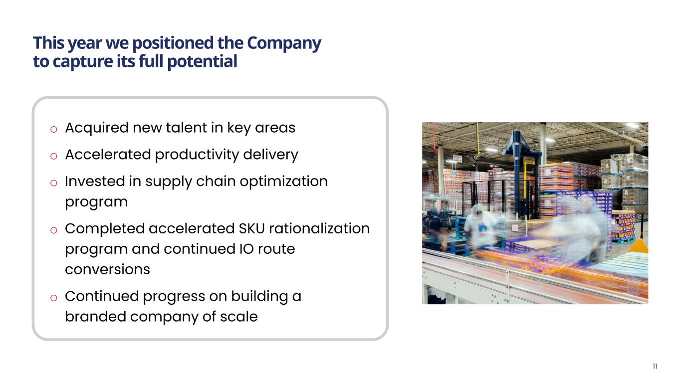 This year we positioned the Company to capture its full potential 11 o Acquired new talent in key areas o Accelerated productivity delivery o Invested in supply chain optimization program o Completed accelerated SKU rationalization program and continued IO route conversions o Continued progress on building a branded company of scale