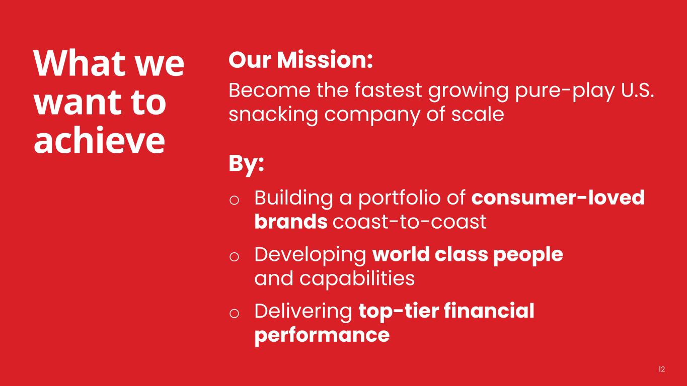 By: o Building a portfolio of consumer-loved brands coast-to-coast o Developing world class people and capabilities o Delivering top-tier financial performance Our Mission: Become the fastest growing pure-play U.S. snacking company of scale What we want to achieve 12
