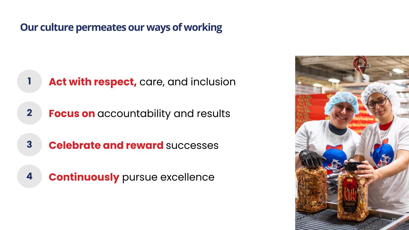 Targeting ~300bps of Adj. EBITDA Margin improvement over the next three years 16 2022 2023E 2026E 12.1% ~13% ~16% Note: See appendix for reconciliation of Utz Non-GAAP financial measures to most directly comparable GAAP measures. (1) Company estimate based Net Sales and Adjusted EBITDA fiscal 2023 outlook. See press release dated 12/15/2023. (2) A quantitative reconciliation is not available without unreasonable efforts due to the high variability, complexity, and low visibility with respect to Net Sales and certain items which are excluded from Adjusted EBITDA. (2) o Volume-led revenue growth driving fixed cost leverage o Advantaged product mix through portfolio management o Supply chain transformation o Investments to support leading organization capabilities (1)(2) Adjusted EBITDA Margin