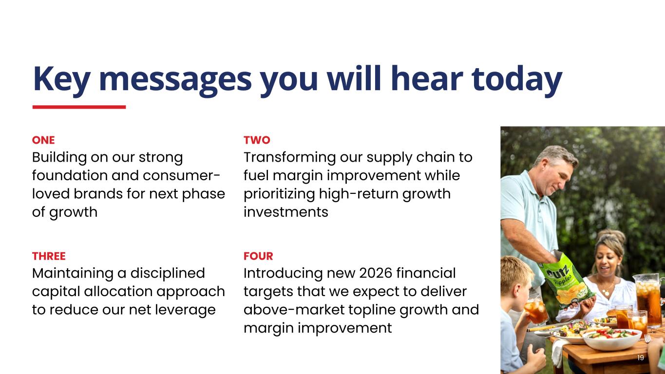 Key messages you will hear today Building on our strong foundation and consumer- loved brands for next phase of growth ONE Maintaining a disciplined capital allocation approach to reduce our net leverage THREE Transforming our supply chain to fuel margin improvement while prioritizing high-return growth investments TWO Introducing new 2026 financial targets that we expect to deliver above-market topline growth and margin improvement FOUR 19