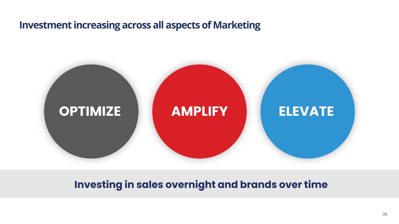 Investment increasing across all aspects of Marketing 35 Investing in sales overnight and brands over time OPTIMIZE AMPLIFY ELEVATE