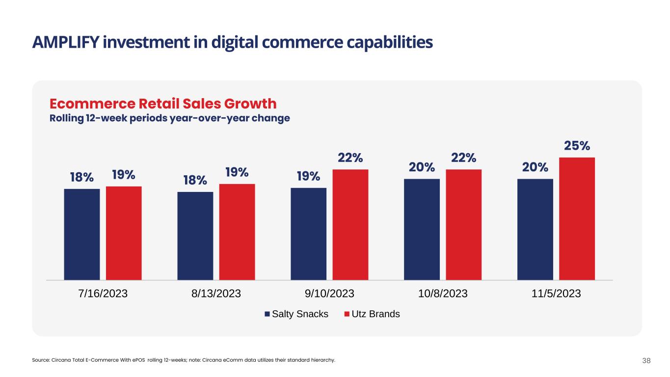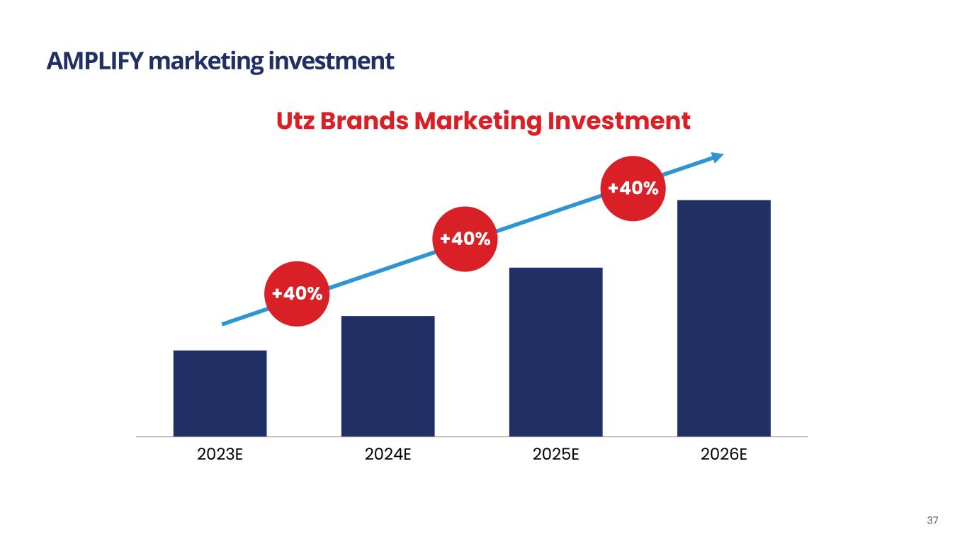 2023E 2024E 2025E 2026E AMPLIFY marketing investment 37 +40% Utz Brands Marketing Investment +40% +40%