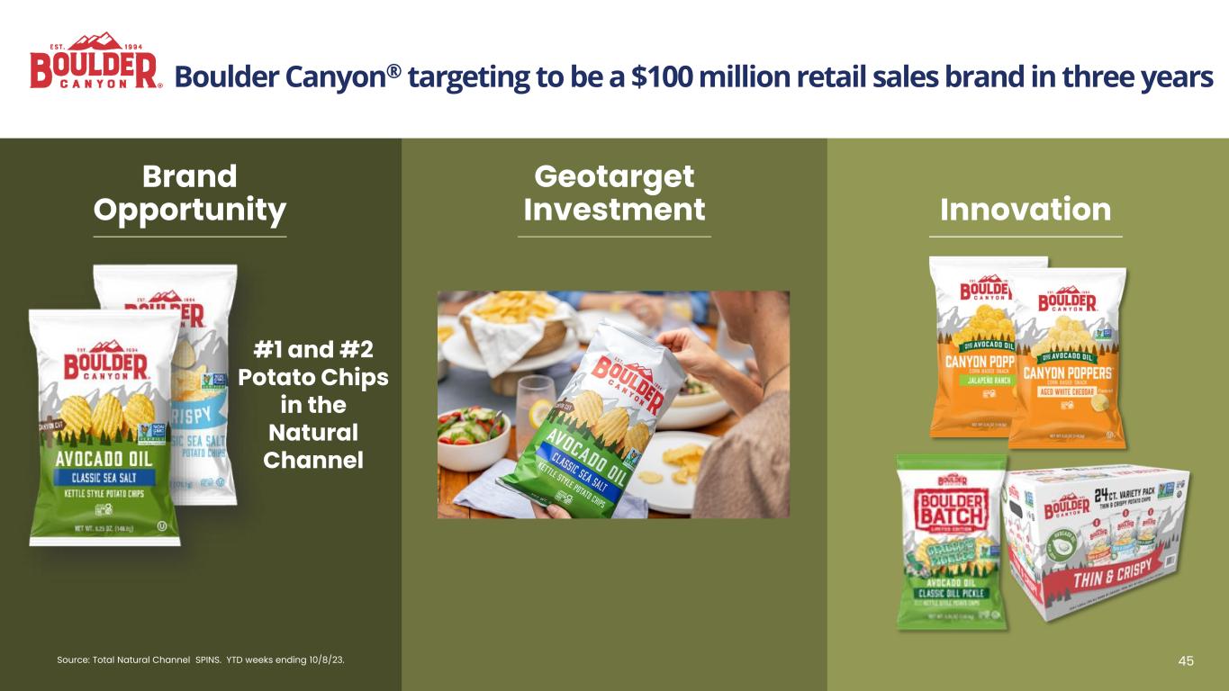 Brand Opportunity Geotarget Investment Innovation Boulder Canyon® targeting to be a $100 million retail sales brand in three years 45 #1 and #2 Potato Chips in the Natural Channel Source: Total Natural Channel SPINS. YTD weeks ending 10/8/23.