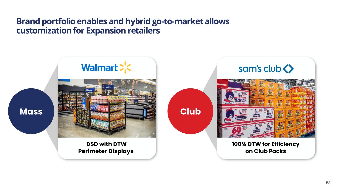 Club 100% DTW for Efficiency on Club Packs Brand portfolio enables and hybrid go-to-market allows customization for Expansion retailers 58 Mass DSD with DTW Perimeter Displays