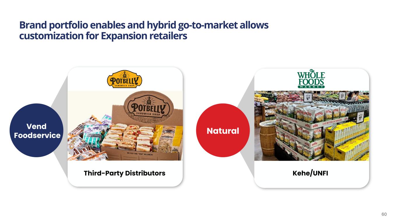 Natural Kehe/UNFI Brand portfolio enables and hybrid go-to-market allows customization for Expansion retailers 60 Vend Foodservice Third-Party Distributors