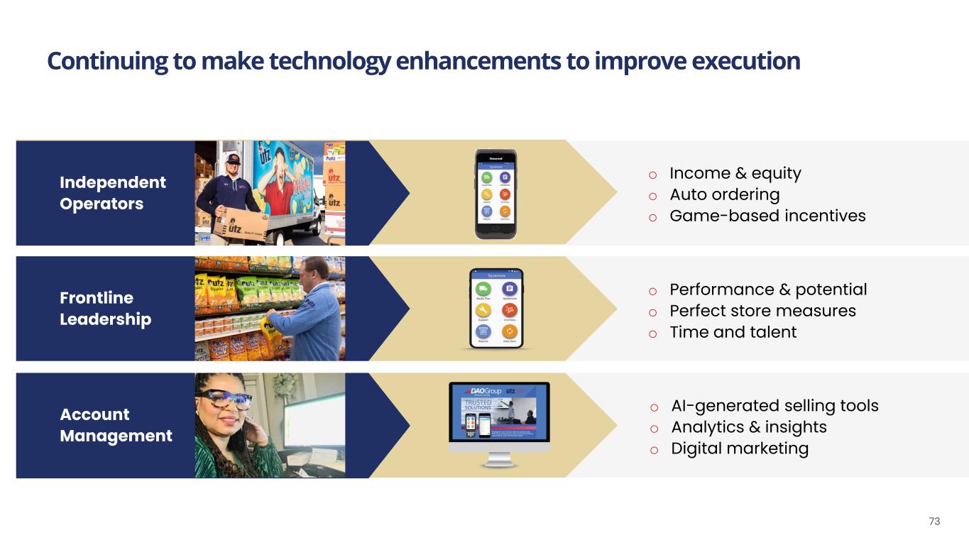 Continuing to make technology enhancements to improve execution 73 Independent Operators o Income & equity o Auto ordering o Game-based incentives o Performance & potential o Perfect store measures o Time and talent Frontline Leadership o AI-generated selling tools o Analytics & insights o Digital marketing Account Managementt