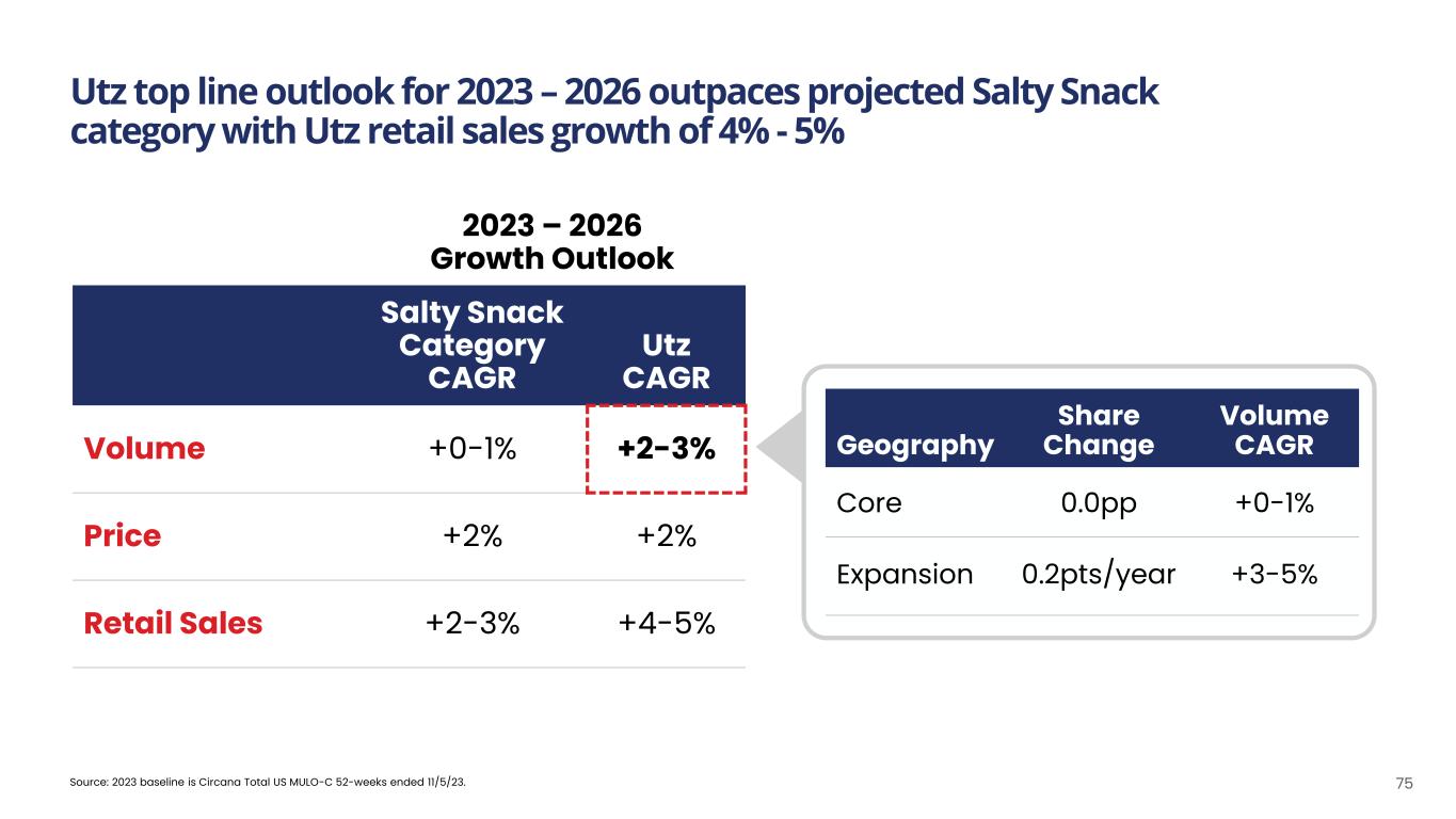 Disclaimer 2 Forward-Looking Statements Certain statements made herein are not historical facts but are “forward-looking statements” within the meaning of the “safe harbor” provisions of the Private Securities Litigation Reform Act of 1995, as amended. The forward-looking statements generally are accompanied by or include, without limitation, statements such as “will”, “expect”, “intends”, “goal” or other similar words, phrases or expressions. These forward-looking statements include the expected effects from the COVID-19 pandemic; future plans for the Utz Brands, Inc. (“the Company”), including plans related transformation of the Company’s supply chain, the Company’s geographic expansion, the Company’s product offerings and product mix, the Company’s ESG priorities, the Company’s cost savings plans and the Company’s logistics optimization efforts; the estimated or anticipated future results and benefits of the Company’s plans and operations; future capital structure; future opportunities for the Company; the effects of inflation or supply chain disruptions; statements regarding the Company’s project balance sheet and liabilities, including net leverage; and other statements that are not historical facts. These statements are based on the current expectations of the Company’s management and are not predictions of actual performance. These statements are subject to a number of risks and uncertainties and the Company’s business and actual results may differ materially. Factors that may cause such differences include, but are not limited to: the risk that the Company’s gross profit margins may be adversely impacted by a variety of factors, including variations in raw materials pricing, retail customer requirements and mix, sales velocities and required promotional support; changes in consumers’ loyalty to the Company’s brands due to factors beyond the Company’s control, including changes in consumer spending due to factors such as increasing household debt; changes in demand for the Company’s products affected by changes in consumer preferences and tastes or if the Company is unable to innovate or market its products effectively, particularly in the Company’s Expansion geographies; costs associated with building brand loyalty and interest in the Company’s products, which may be affected by actions by the Company’s competitors’ that result in the Company’s products not suitably differentiated from the products of their competitors; consolidation of key suppliers to the Company; inability of the Company to adopt efficiencies into its manufacturing processes, including automation and labor optimization, its network, including through plant consolidation and lowest landed cost for shipping its products, or its logistics operation; fluctuations in results of operations of the Company from quarter to quarter because of changes in promotional activities; the possibility that the Company may be adversely affected by other economic, business or competitive factors; the risk that the Company may not recognize the anticipated benefits of recently completed business combinations and other acquisitions recently completed by the Company (collectively, the “Business Combinations”), which may be affected by, among other things, competition and the ability of the Company to grow and manage growth profitably and retain its key employees; the ability of the Company to close planned acquisitions; changes in applicable law or regulations; costs related to the Business Combinations and other planned acquisitions; the inability of the Company to maintain the listing of the Company’s Class A Common Stock on the New York Stock Exchange; the inability of the Company to develop and maintain effective internal controls; and other risks and uncertainties set forth in the section entitled “Risk Factors” and “Forward-Looking Statements” in the Company’s Annual Report on Form 10-K filed with the U.S. Securities and Exchange Commission (the “Commission”) for the fiscal year ended January 1, 2023, and other reports filed by the Company with the Commission. In addition, forward-looking statements provide the Company’s expectations, plans or forecasts of future events and views as of the date of this communication. These forward-looking statements should not be relied upon as representing the Company’s assessments as of any date subsequent to the date of this communication. The Company cautions investors not to place undue reliance upon any forward-looking statements, which speak only as of the date made. The Company does not undertake or accept any obligation or undertaking to release publicly any updates or revisions to any forward-looking statements to reflect any change in its expectations or any change in events, conditions or circumstances on which any such statement is based, except as otherwise required by law. No Offer or Solicitation This presentation does not constitute a solicitation of a proxy, consent or authorization with respect to any securities of the Company. This presentation also does not constitute an offer to sell or the solicitation of an offer to buy securities, nor will there be any sale of securities in any state or jurisdiction in which such offer, solicitation or sale would be unlawful prior to registration or qualification under the securities laws of any such jurisdiction. No offering of securities will be made except by means of a prospectus meeting the requirements of the Securities Act of 1933, as amended, or an exemption therefrom.