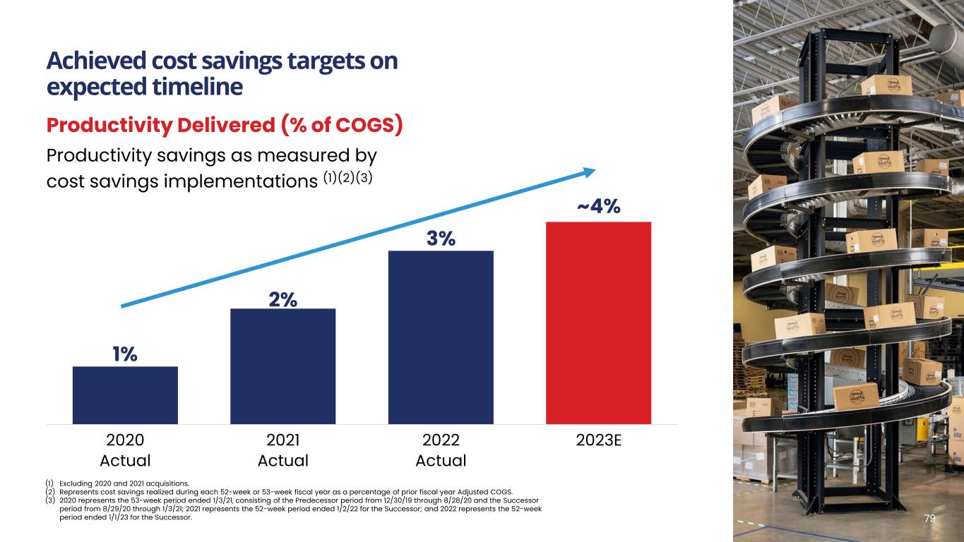 Achieved cost savings targets on expected timeline 79 1% 2% 3% ~4% 2020 Actual 2021 Actual 2022 Actual 2023E Productivity Delivered (% of COGS) Productivity savings as measured by cost savings implementations (1)(2)(3) (1) Excluding 2020 and 2021 acquisitions. (2) Represents cost savings realized during each 52-week or 53-week fiscal year as a percentage of prior fiscal year Adjusted COGS. (3) 2020 represents the 53-week period ended 1/3/21, consisting of the Predecessor period from 12/30/19 through 8/28/20 and the Successor period from 8/29/20 through 1/3/21; 2021 represents the 52-week period ended 1/2/22 for the Successor; and 2022 represents the 52-week period ended 1/1/23 for the Successor.