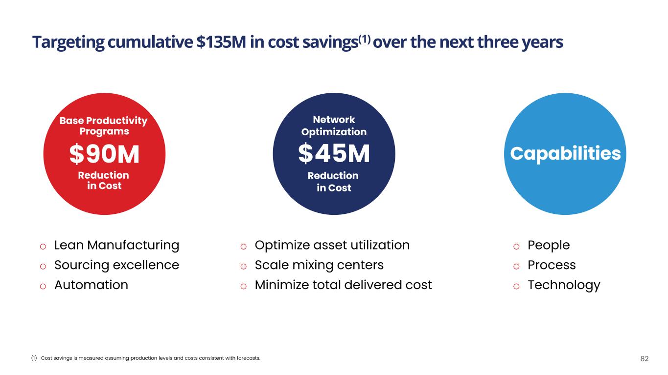 Targeting cumulative $135M in cost savings(1) over the next three years 82 Base Productivity Programs $90M Reduction in Cost o Lean Manufacturing o Sourcing excellence o Automation Capabilities o People o Process o Technology Network Optimization $45M Reduction in Cost o Optimize asset utilization o Scale mixing centers o Minimize total delivered cost (1) Cost savings is measured assuming production levels and costs consistent with forecasts.