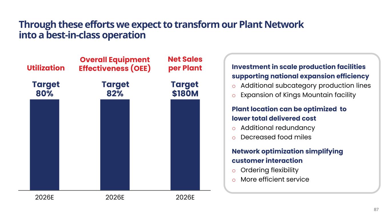 Overall Equipment Effectiveness (OEE) Through these efforts we expect to transform our Plant Network into a best-in-class operation 87 2026E 80% 2026E 82% 2026E $180M Utilization Net Sales per Plant Investment in scale production facilities supporting national expansion efficiency o Additional subcategory production lines o Expansion of Kings Mountain facility Plant location can be optimized to lower total delivered cost o Additional redundancy o Decreased food miles Network optimization simplifying customer interaction o Ordering flexibility o More efficient service Target Target Target