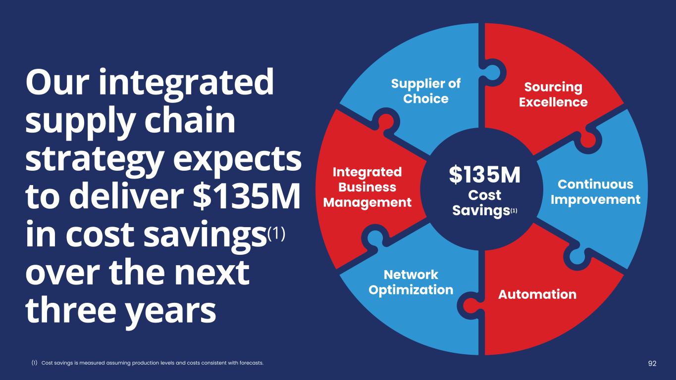 Our integrated supply chain strategy expects to deliver $135M in cost savings(1) over the next three years 92 $135M Cost Savings(1) Supplier of Choice Integrated Business Management Network Optimization Sourcing Excellence Automation Continuous Improvement (1) Cost savings is measured assuming production levels and costs consistent with forecasts.