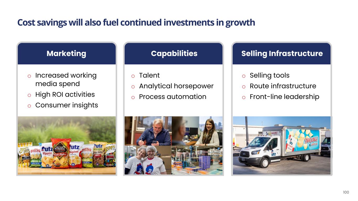 Cost savings will also fuel continued investments in growth 100 Marketing o Increased working media spend o High ROI activities o Consumer insights Capabilities o Talent o Analytical horsepower o Process automation Selling Infrastructure o Selling tools o Route infrastructure o Front-line leadership