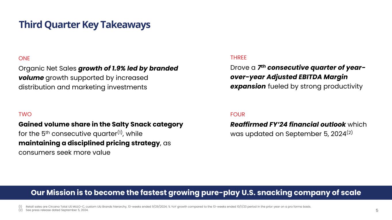 Utz Brands, Inc. Third Quarter 2024 Earnings Presentation October 31, 2024