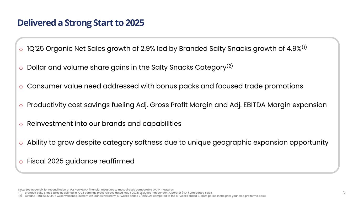Utz Brands, Inc. First Quarter 2025 Earnings Presentation May 1, 2025