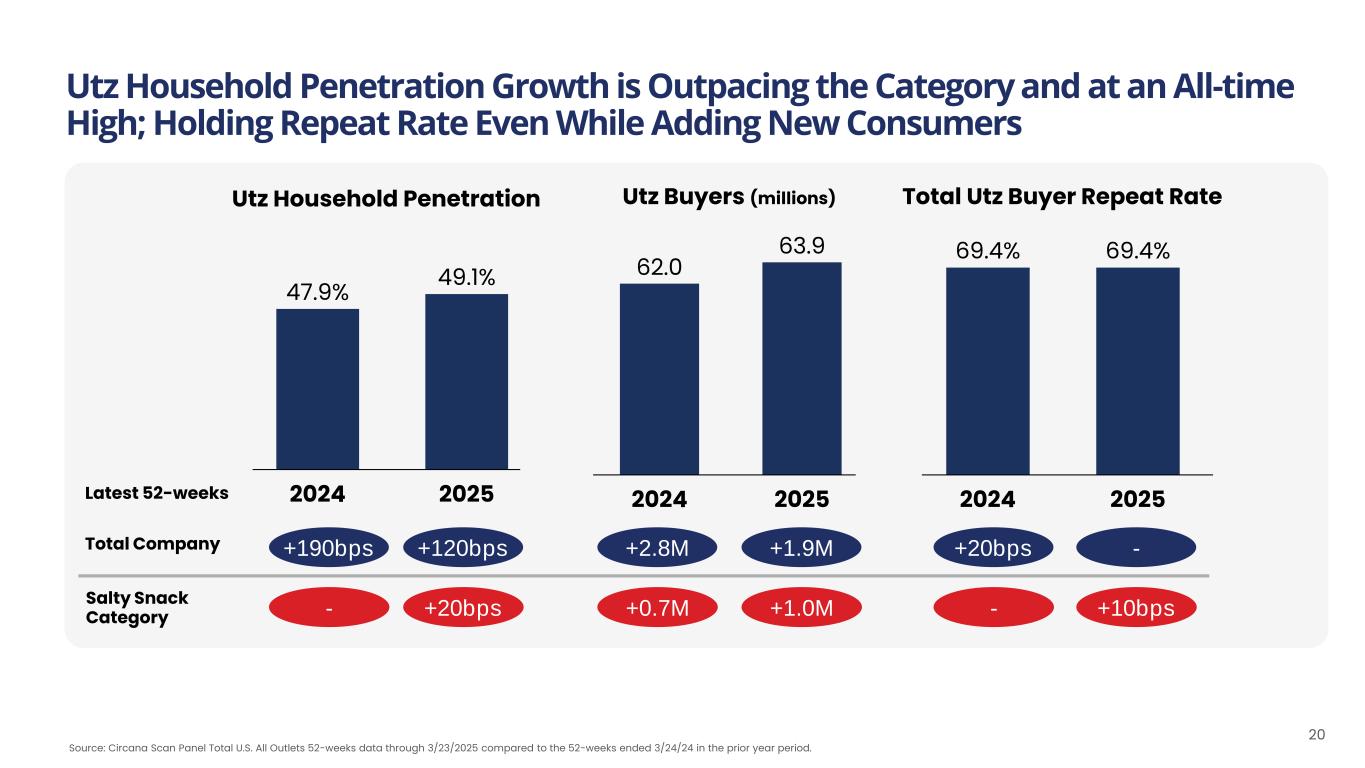 Increased our 1Q’25 Marketing Investments +30% vs. prior year 19 Launched new Social Media Campaign Utz_Pronunciation-campaign_post3.mp4 Screenshot 2025-04-18 at 1.51.48 PM.png #TeamUhtz #TeamOotz #TeamYoutz Investing in Experiences & Social Media Zapp’s Superbowl and Mardi Gras program Brand’s cult-like appeal and “People Chips” viral fandom