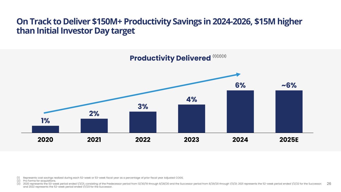 On Track to Deliver $150M+ Productivity Savings in 2024-2026, $15M higher than Initial Investor Day target 26 Productivity Delivered (1) Represents cost savings realized during each 52-week or 53-week fiscal year as a percentage of prior fiscal year Adjusted COGS. (2) Pro Forma for acquisitions. (3) 2020 represents the 53-week period ended 1/3/21, consisting of the Predecessor period from 12/30/19 through 8/28/20 and the Successor period from 8/29/20 through 1/3/21; 2021 represents the 52-week period ended 1/2/22 for the Successor; and 2022 represents the 52-week period ended 1/1/23 for the Successor. 2020 2021 2022 2023 2024 2025E 1% 2% 3% 4% 6% ~6% (1)(2)(3)