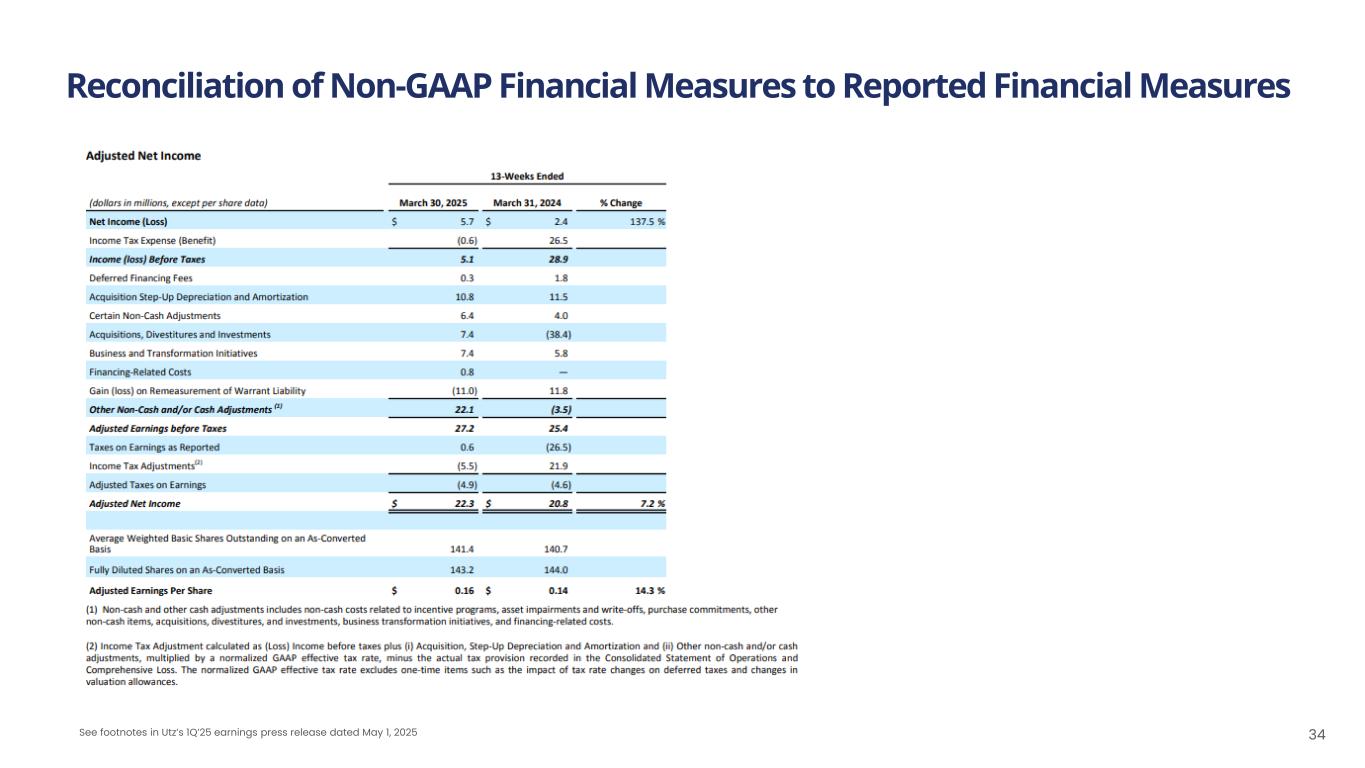 Reconciliation of Non-GAAP Financial Measures to Reported Financial Measures 33See footnotes in Utz’s 1Q’25 earnings press release dated May 1, 2025
