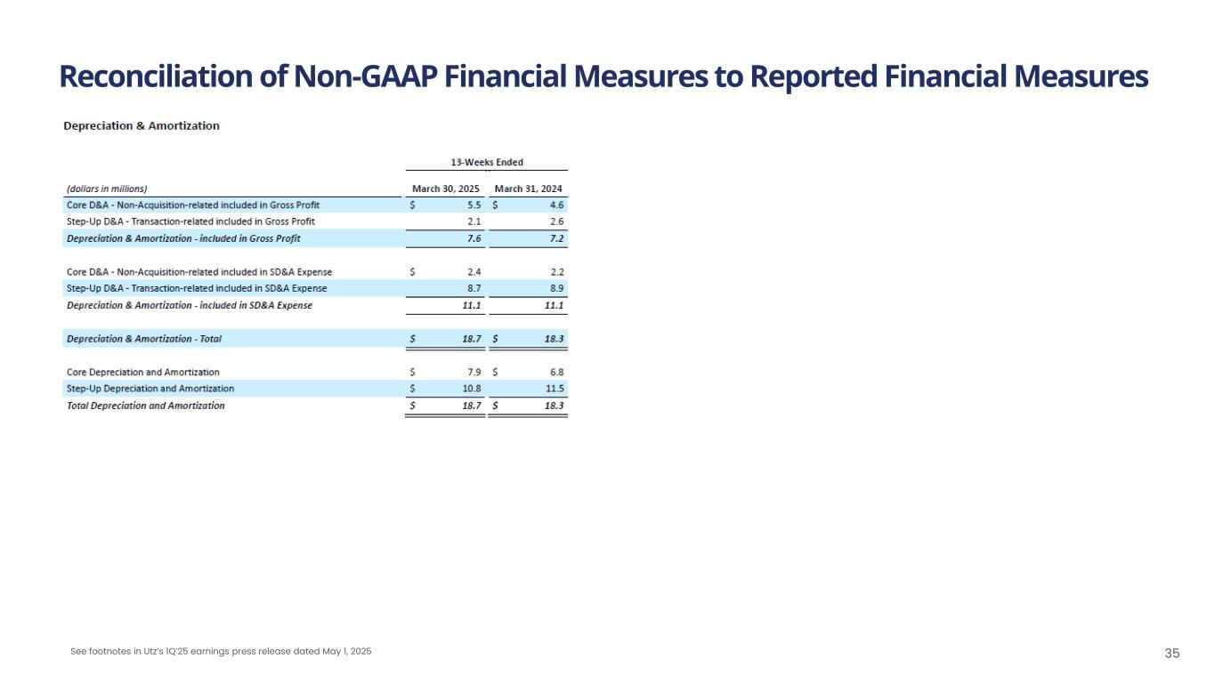 Reconciliation of Non-GAAP Financial Measures to Reported Financial Measures 34See footnotes in Utz’s 1Q’25 earnings press release dated May 1, 2025