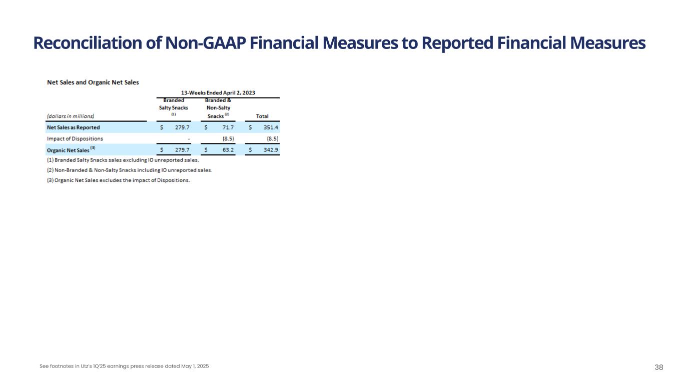Reconciliation of Non-GAAP Financial Measures to Reported Financial Measures 37See footnotes in Utz’s 1Q’25 earnings press release dated May 1, 2025