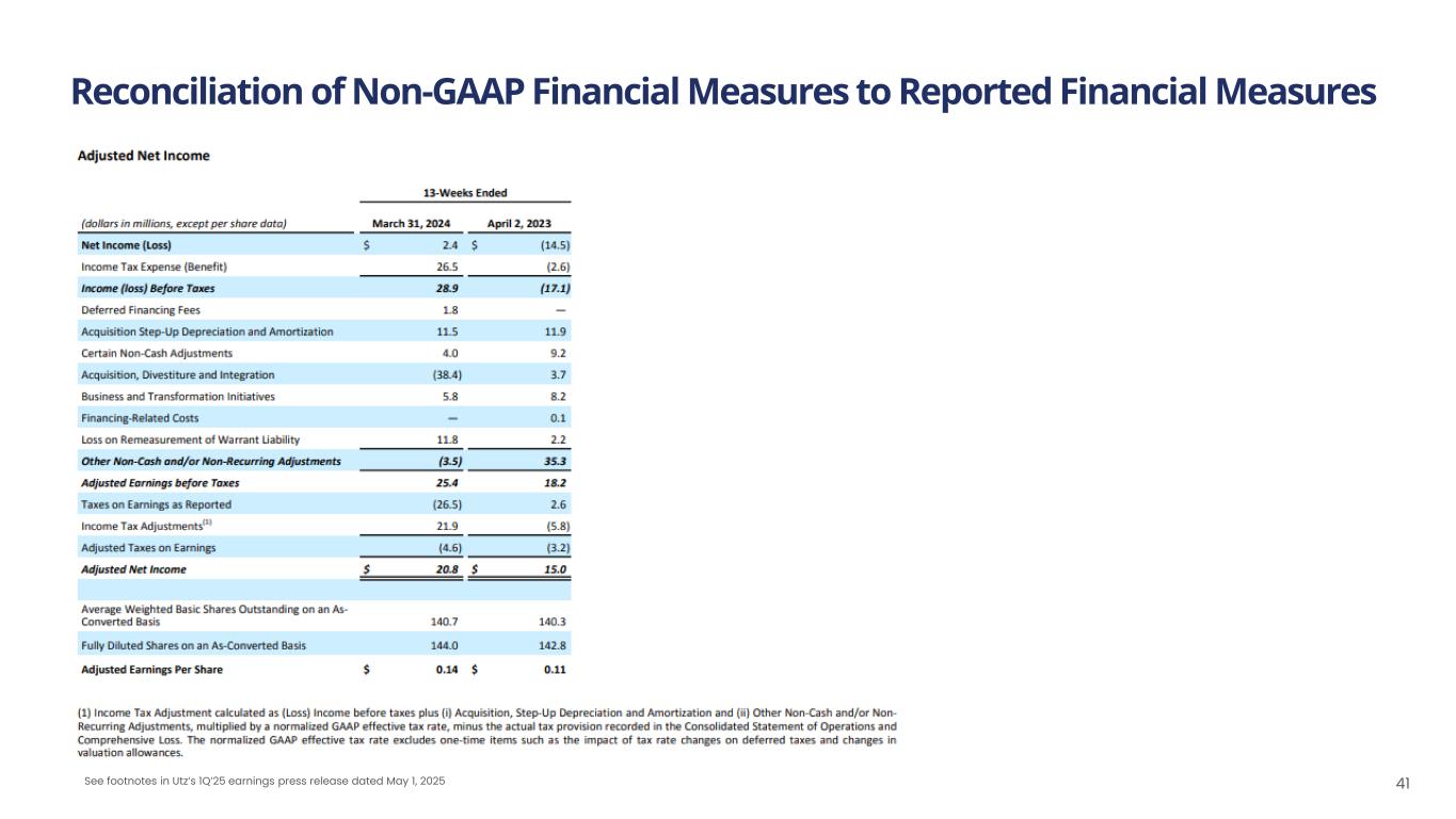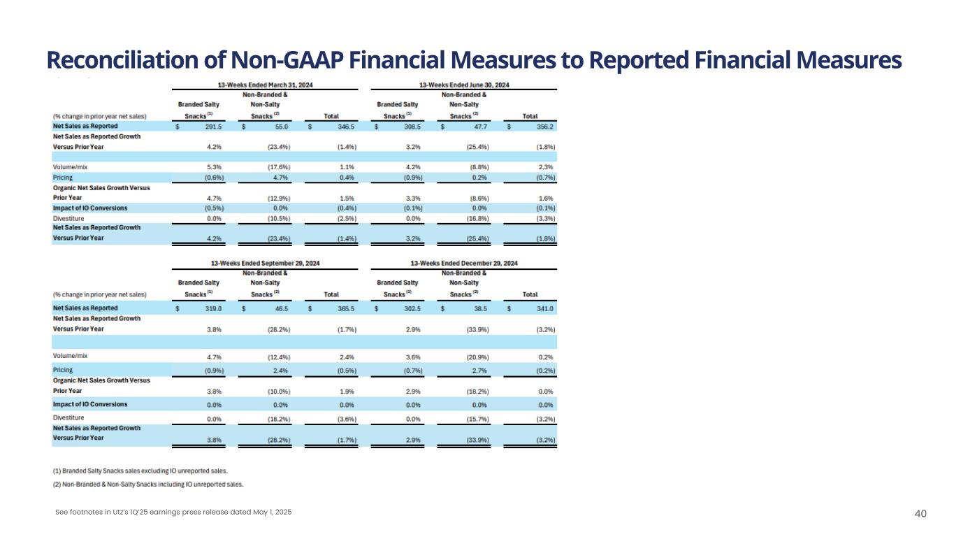 Reconciliation of Non-GAAP Financial Measures to Reported Financial Measures 40See footnotes in Utz’s 1Q’25 earnings press release dated May 1, 2025