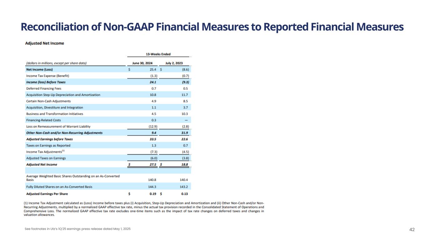 Reconciliation of Non-GAAP Financial Measures to Reported Financial Measures 41See footnotes in Utz’s 1Q’25 earnings press release dated May 1, 2025