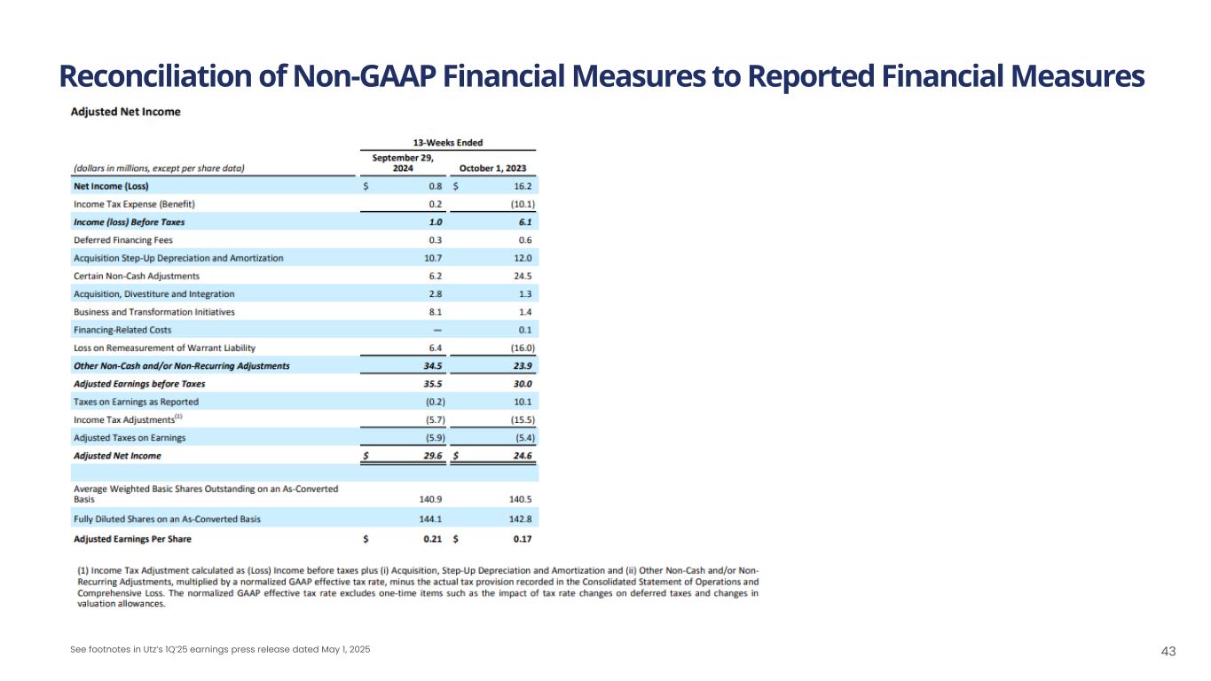 Reconciliation of Non-GAAP Financial Measures to Reported Financial Measures 42See footnotes in Utz’s 1Q’25 earnings press release dated May 1, 2025