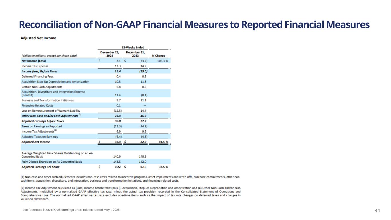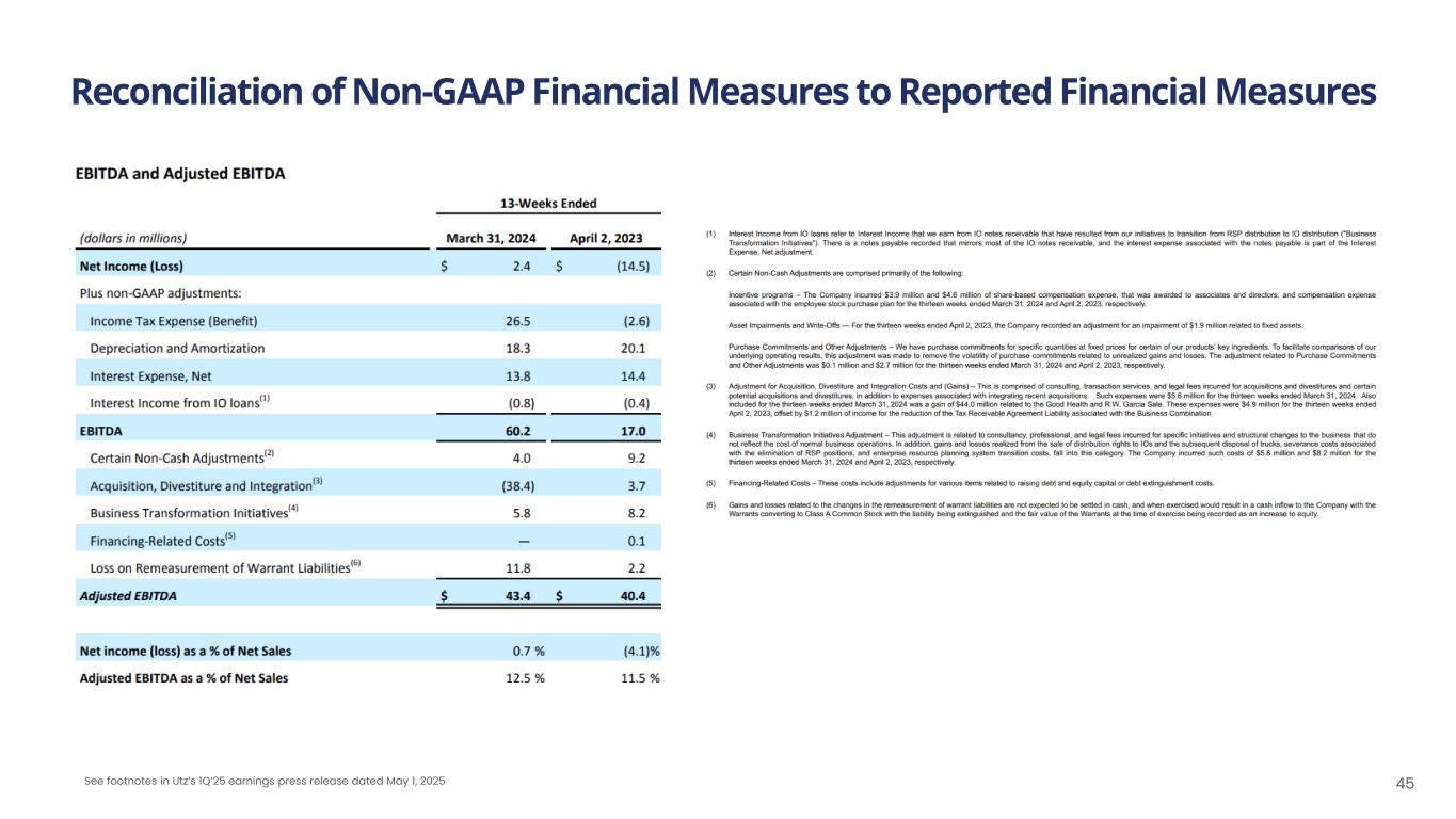 Reconciliation of Non-GAAP Financial Measures to Reported Financial Measures 44See footnotes in Utz’s 1Q’25 earnings press release dated May 1, 2025