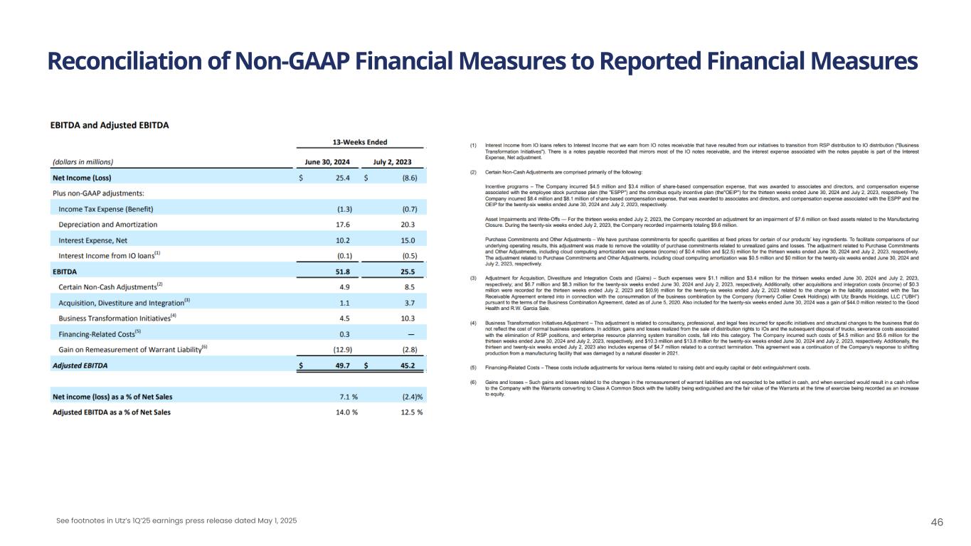 Reconciliation of Non-GAAP Financial Measures to Reported Financial Measures 45See footnotes in Utz’s 1Q’25 earnings press release dated May 1, 2025