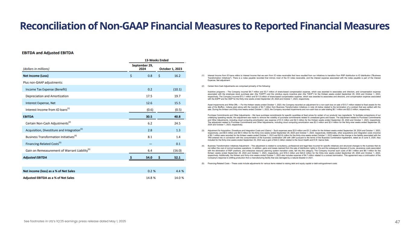 Reconciliation of Non-GAAP Financial Measures to Reported Financial Measures 47See footnotes in Utz’s 1Q’25 earnings press release dated May 1, 2025