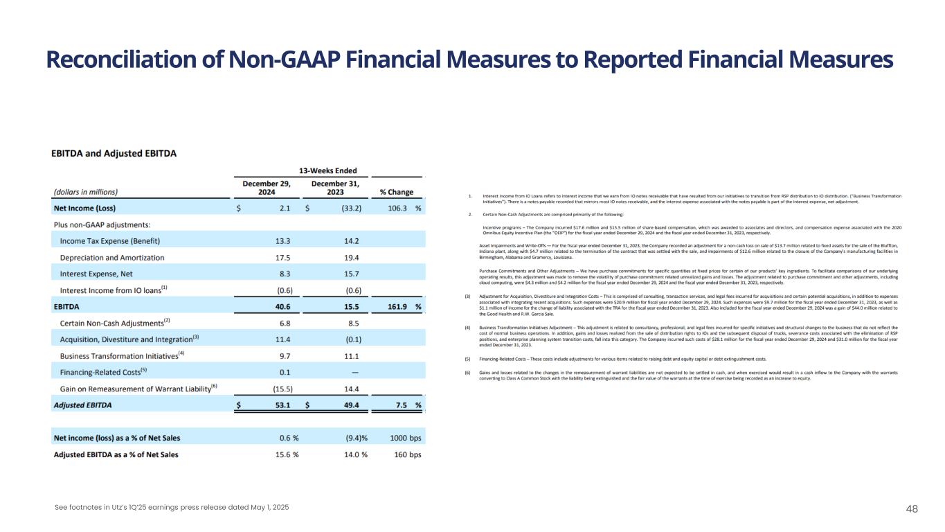 Reconciliation of Non-GAAP Financial Measures to Reported Financial Measures 48See footnotes in Utz’s 1Q’25 earnings press release dated May 1, 2025