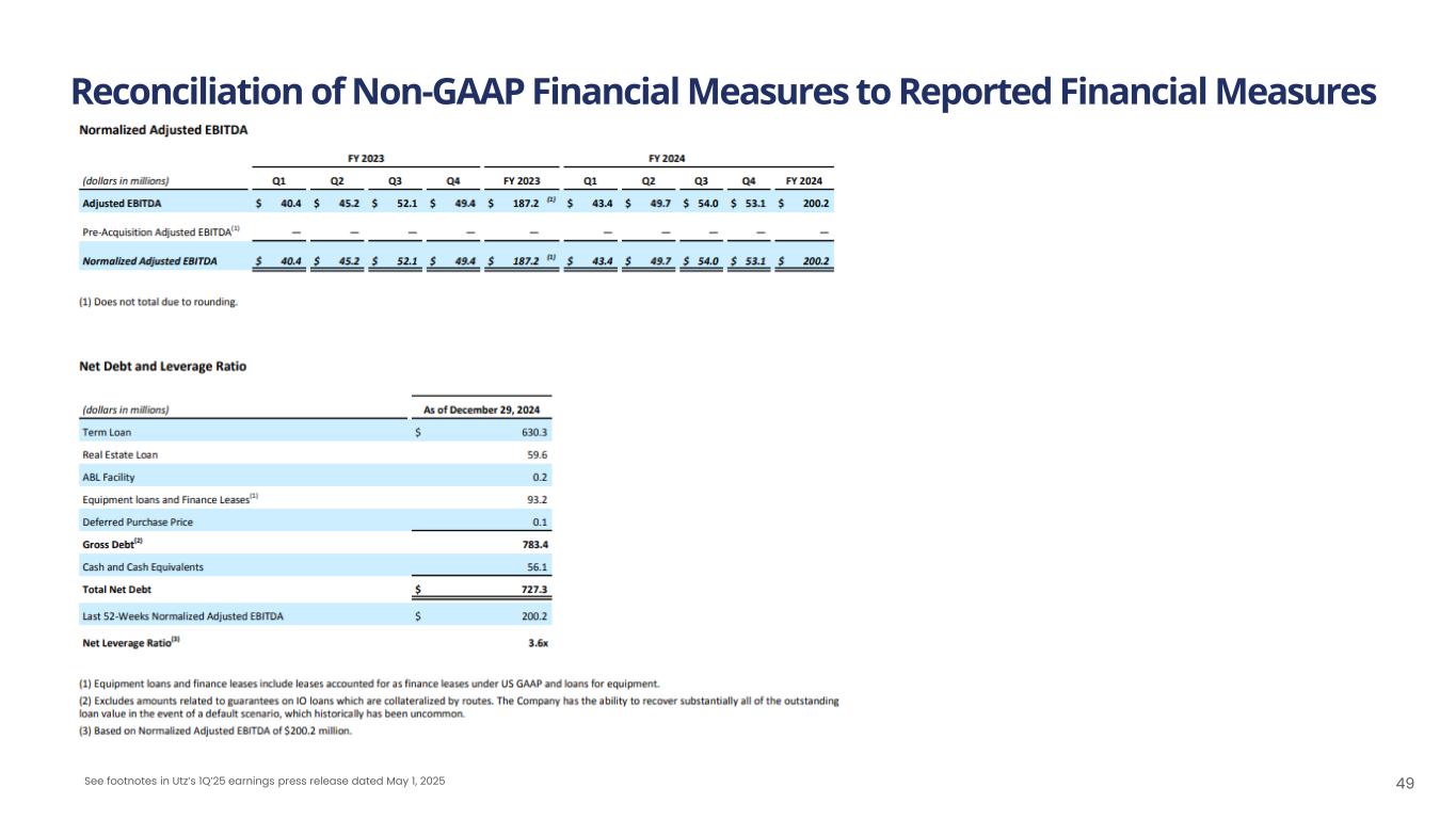 Reconciliation of Non-GAAP Financial Measures to Reported Financial Measures 49See footnotes in Utz’s 1Q’25 earnings press release dated May 1, 2025