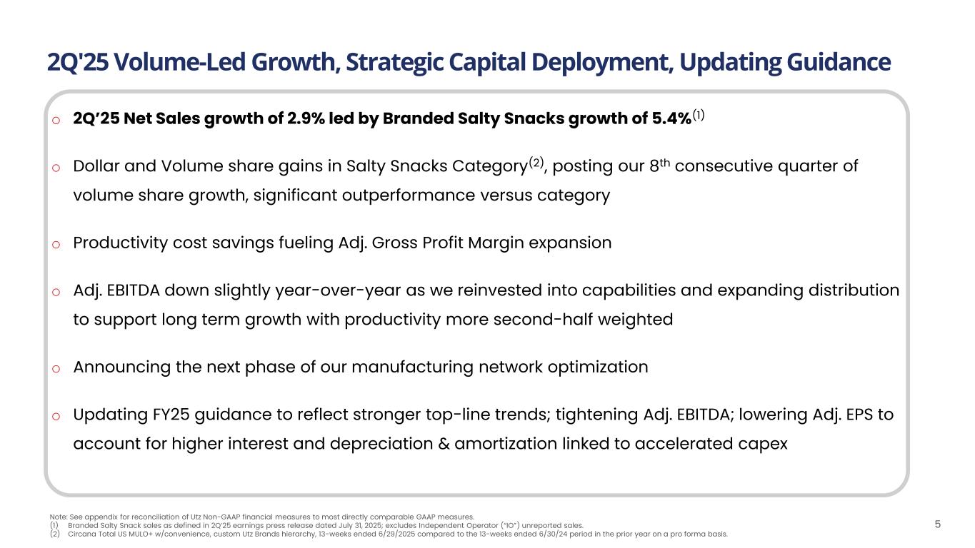 Utz Brands, Inc. Second Quarter 2025 Earnings Presentation July 31, 2025