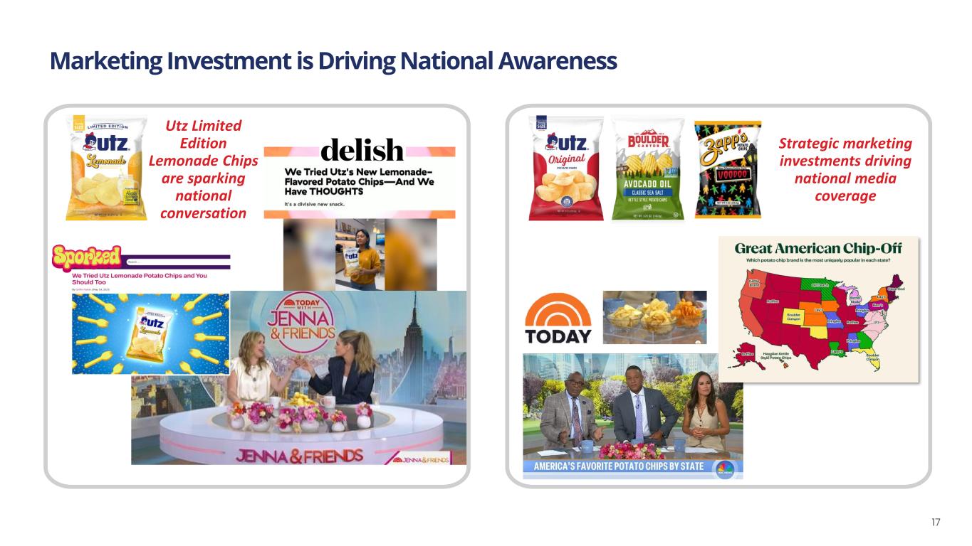Marketing Investment is Driving National Awareness 17 Utz Limited Edition Lemonade Chips are sparking national conversation Strategic marketing investments driving national media coverage