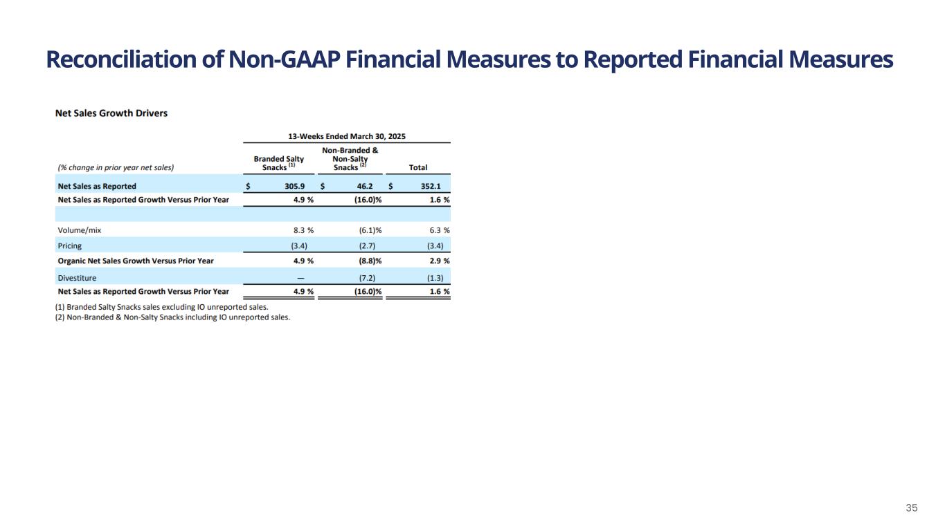 Reconciliation of Non-GAAP Financial Measures to Reported Financial Measures 33See footnotes in Utz’s 1Q’25 earnings press release dated May 1, 2025