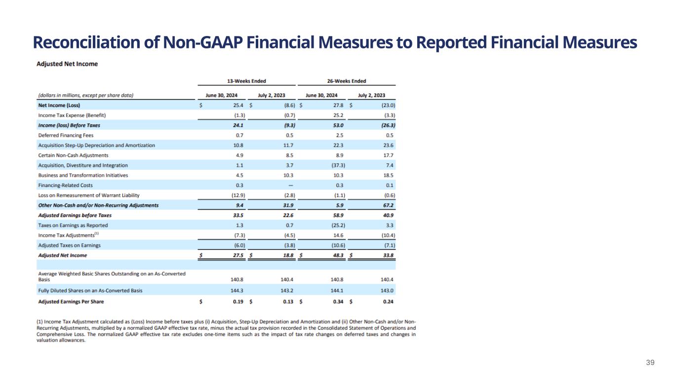 Reconciliation of Non-GAAP Financial Measures to Reported Financial Measures 39