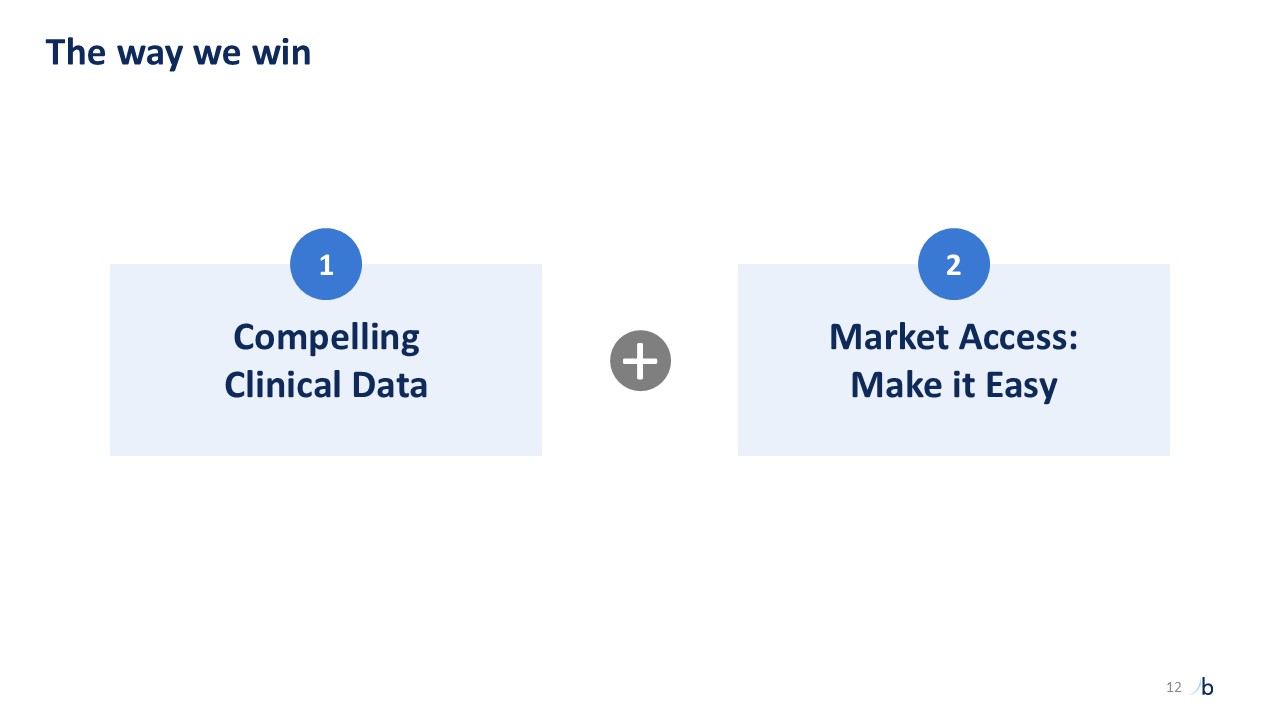 +  Compelling   Clinical Data  1  Market Access:  Make it Easy  2  The way we win