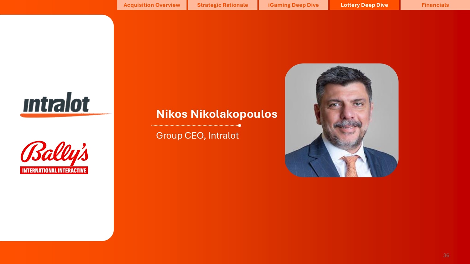 Nikos Nikolakopoulos Group CEO, Intralot 36 Financials Lottery Deep Dive iGaming Deep Dive Strategic Rationale Acquisition Overview