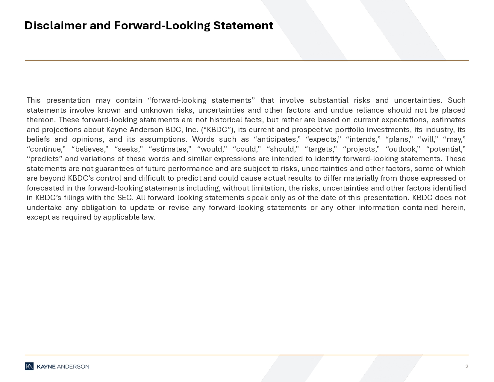 EX-99.2 3 ea023272601ex99-2_kayne.htm KAYNE ANDERSON BDC, INC. FOURTH QUARTER 2024 EARNINGS PRESENTATION