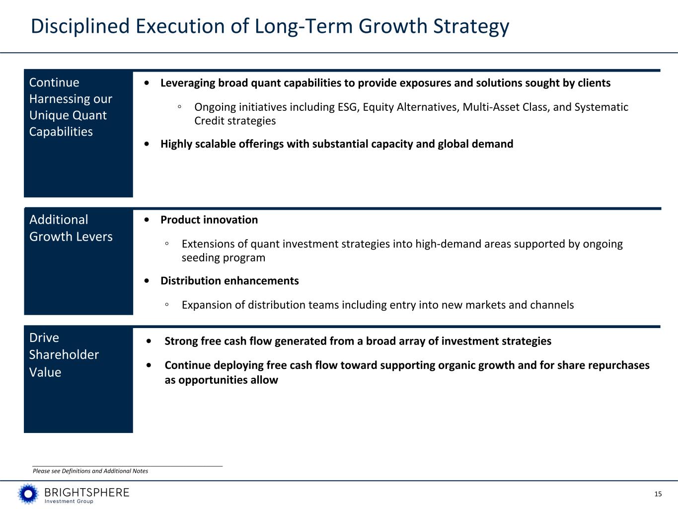 15 • Leveraging broad quant capabilities to provide exposures and solutions sought by clients ◦ Ongoing initiatives including ESG, Equity Alternatives, Multi-Asset Class, and Systematic Credit strategies • Highly scalable offerings with substantial capacity and global demand Disciplined Execution of Long-Term Growth Strategy • Product innovation ◦ Extensions of quant investment strategies into high-demand areas supported by ongoing seeding program • Distribution enhancements ◦ Expansion of distribution teams including entry into new markets and channels • Strong free cash flow generated from a broad array of investment strategies • Continue deploying free cash flow toward supporting organic growth and for share repurchases as opportunities allow Continue Harnessing our Unique Quant Capabilities Additional Growth Levers Drive Shareholder Value __________________________________________________________ Please see Definitions and Additional Notes