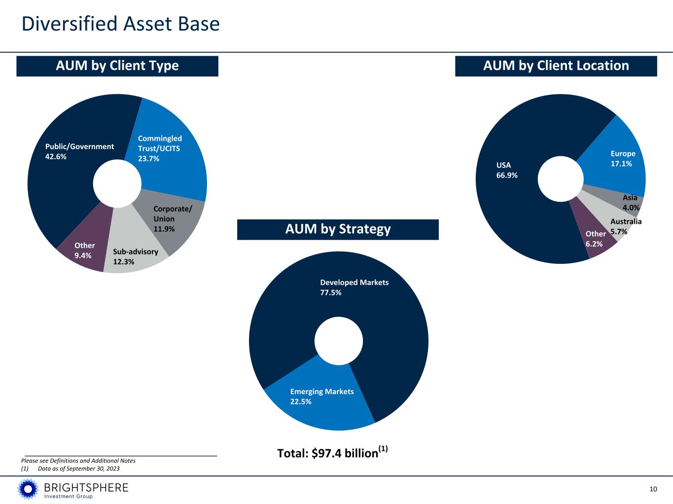 10 Developed Markets 77.5% Emerging Markets 22.5% USA 66.9% Europe 17.1% Asia 4.0% Australia 5.7%Other 6.2% Public/Government 42.6% Commingled Trust/UCITS 23.7% Corporate/ Union 11.9% Sub-advisory 12.3% Other 9.4% AUM by Client Type AUM by Client Location Total: $97.4 billion(1) Diversified Asset Base ___________________________________________________________ Please see Definitions and Additional Notes (1) Data as of September 30, 2023 AUM by Strategy